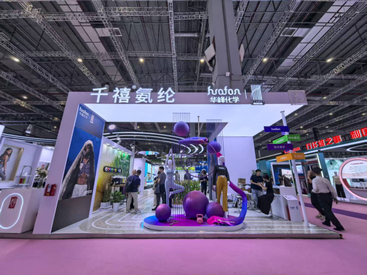 走进华峰化学展位,一丛玉米植株模型引人注目。华峰化学工作人员刘京奇对上海证券报记者表示,公司旗下氨纶系列产品中既有适配高端时尚服饰、助力面料设计创新的高性能氨纶,也有契合绿色消费趋势、主打低碳环保的再生与生物基氨纶。生物基氨纶的原材料便是来自玉米芯。目前,绿色环保可持续的材料和抗菌防臭等功能性材料的需求正不断增加。